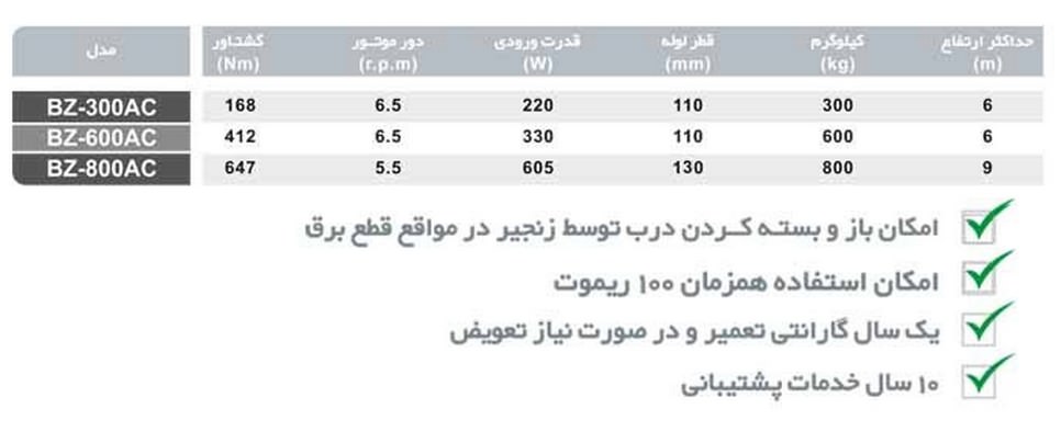 امکان باز و بسته کردن درب توسط زنجیر در مواقع قطع برق
