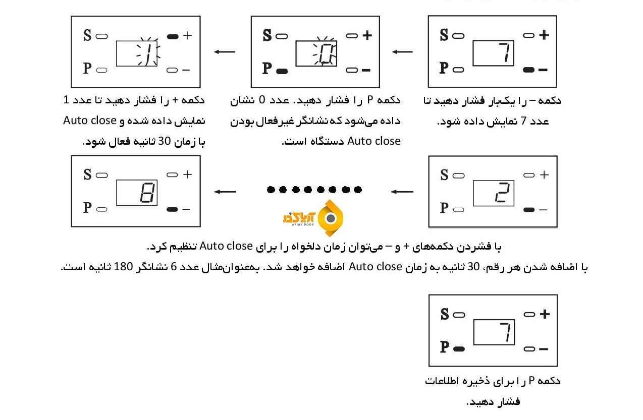 3. با فعال کردن Auto Close ، بیست ( 20 ) ثانیه قبل از بسته شدن کرکره ، بازر دستگاه فعال شده و چراغ روشنایی چشمک زن خواهد شد .