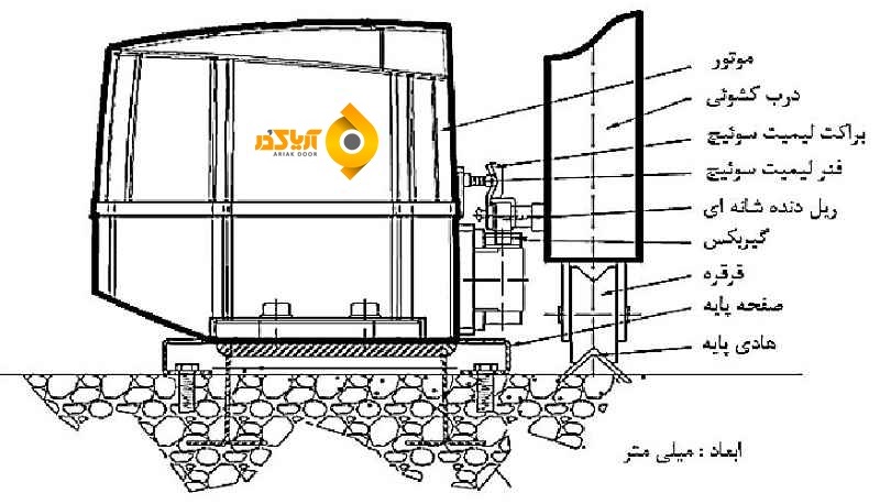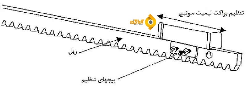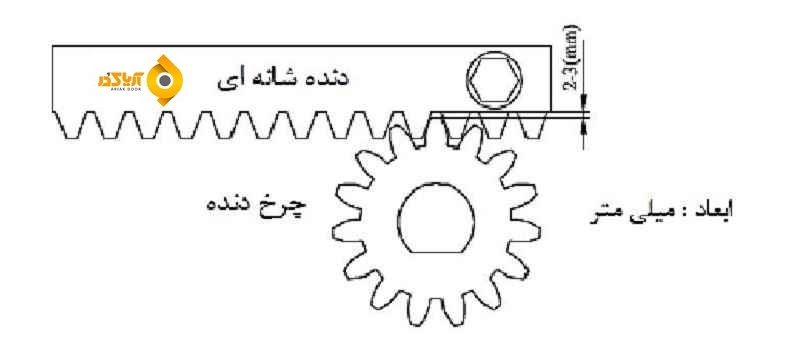 توجه : 2 تا 3 میلیمتر فاصله بین ریل و چرخ دنده مورد نیاز است تا عملیات توسط موتور یا به صورت دستی امکان پذیر باشد .