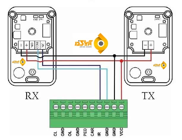 توجه : در صورت استفاده نکردن چشمی در مد بسته ترمینال های IR1 و COM را مطابق شکل زیر به هم جامپر کنید .
