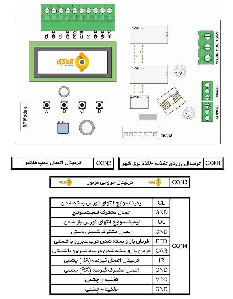 کلید سلکتور بتا جهت فرمان در مد بازشو کامل ( ماشین رو ) باید به CAR و COM وصل شود . چنانچه میخواهید از مد عابررو استفاده کنید باید یک کلید سلکتور به کانکتور PED و COM متصل نمایید .