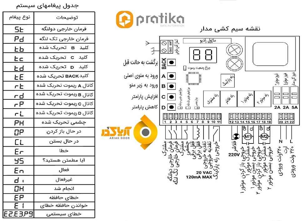 نقشه سیم کشی مدار پراتیکا و جدول پیغام های سیستم :